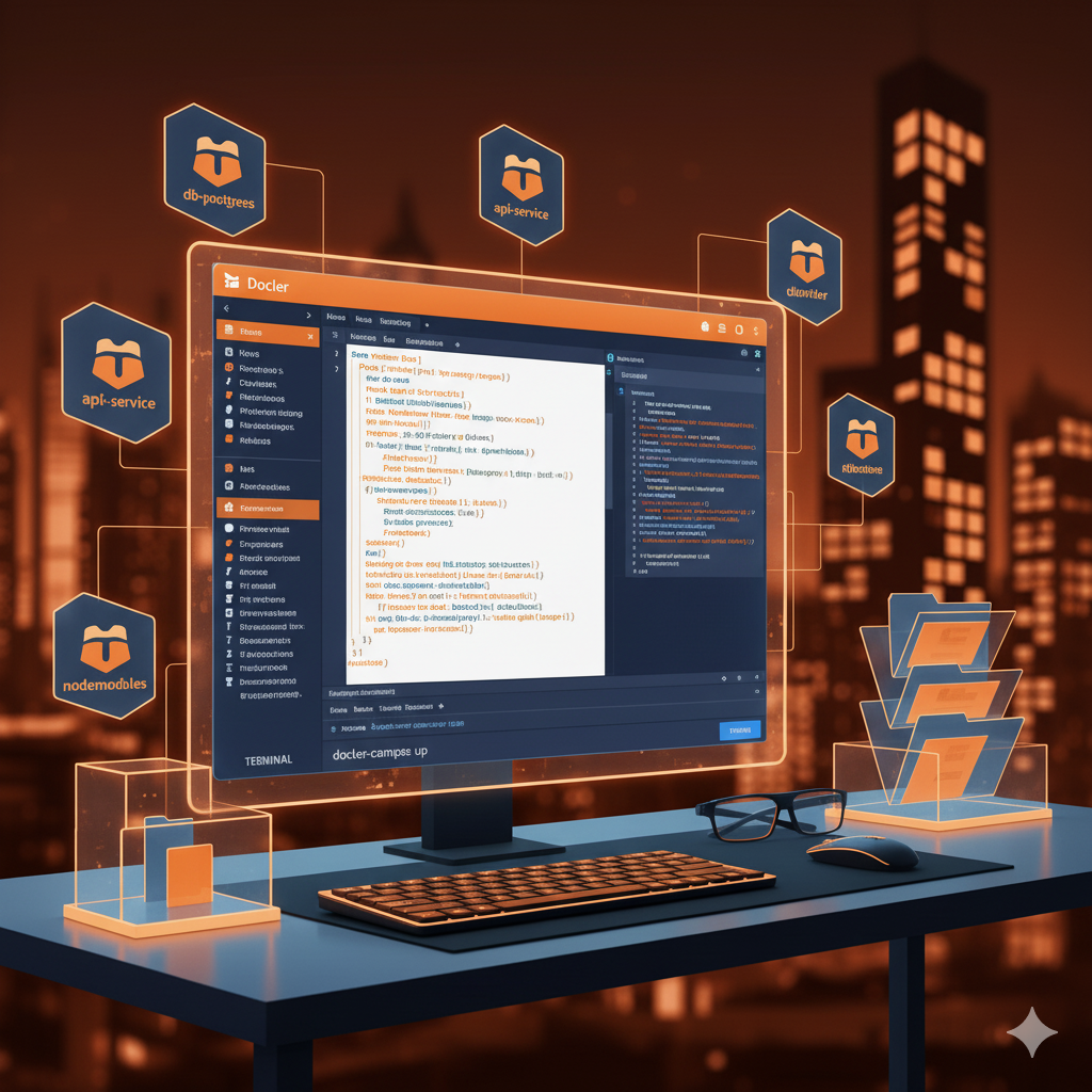 Assim, as ferramentas e dependências vivem no container, e não no seu sistema operacional, evitando conflitos e poluição da máquina local.